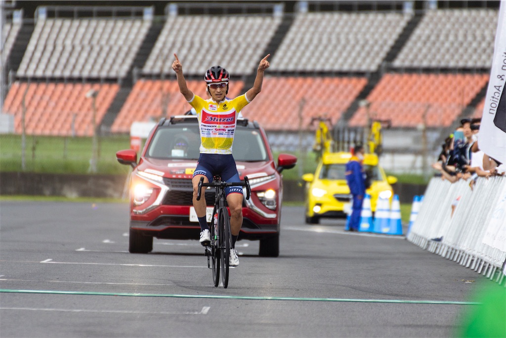 補給所の上りで大喜選手がアタックを仕掛け一人で先行したのを僕が後から少し遅れて追う。